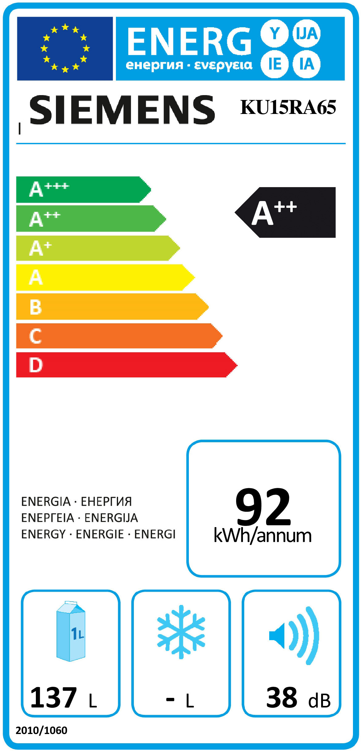 ENC.FRIGO SIEMENS 1P.142L.A++ -KU15RA65